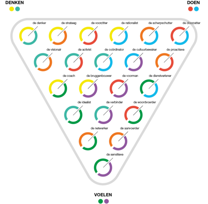 In de MyDrives-analyse vind je de persoonlijke voorkeursrollen. Deze voorkeursrollen ontstaan vooral vanuit de hoogste kleurencombinaties van de voorkeursdrijfveren.